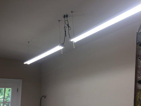 To install LED shop lights in big garages or workshops, you need multiple LED shop lights. It is convenient and practical to use independent pull chain to control each shop light. And with pull chain, there are more suitable scenes to use such as over a workbench and table.