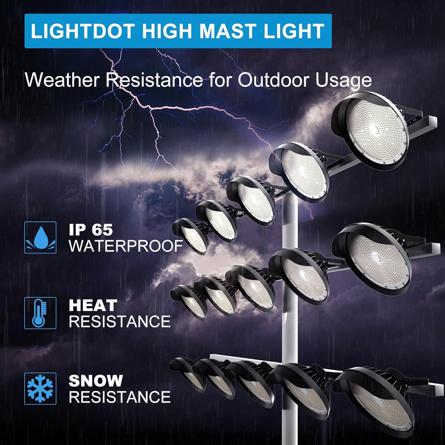 Built to withstand harsh outdoor conditions, Lightdot’s flood lights and stadium lights feature an IP65 waterproof rating, along with snowproof, heat-resistant, and anti-rust properties. The premium aluminum housing and vented design ensure superior heat dissipation, extending the light’s lifespan and performance even in extreme temperatures.