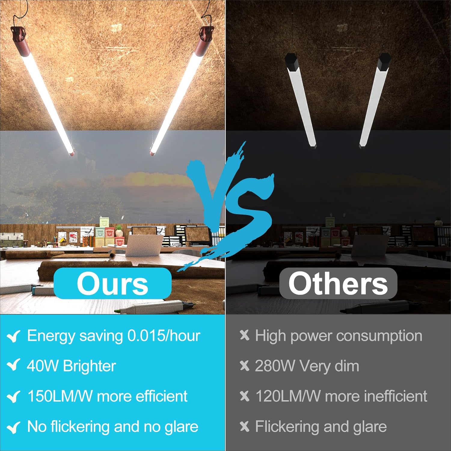 Lightdot 4FT LED Shop Lights, 40W[Eqv. to 280W HPS/WH] 360° Lighting, Surface/Suspension Mount with 5FT On/Off Cord Switch, 6000LM 5000K Daylight, Energy-Saving up to 1500W/5Y(5hrs/Day)-Red