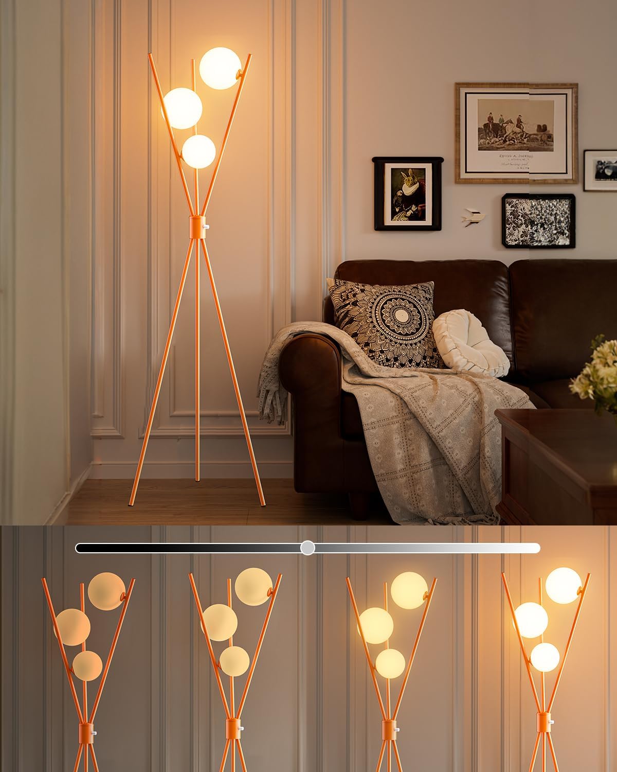 Lightdot Dimmable Globe Modern Floor Lamp, Gold Standing Lamps with 3PCS 3000K G9 Bulbs, Mid Century Modern Floor Lamp for Living Room/Bedroom